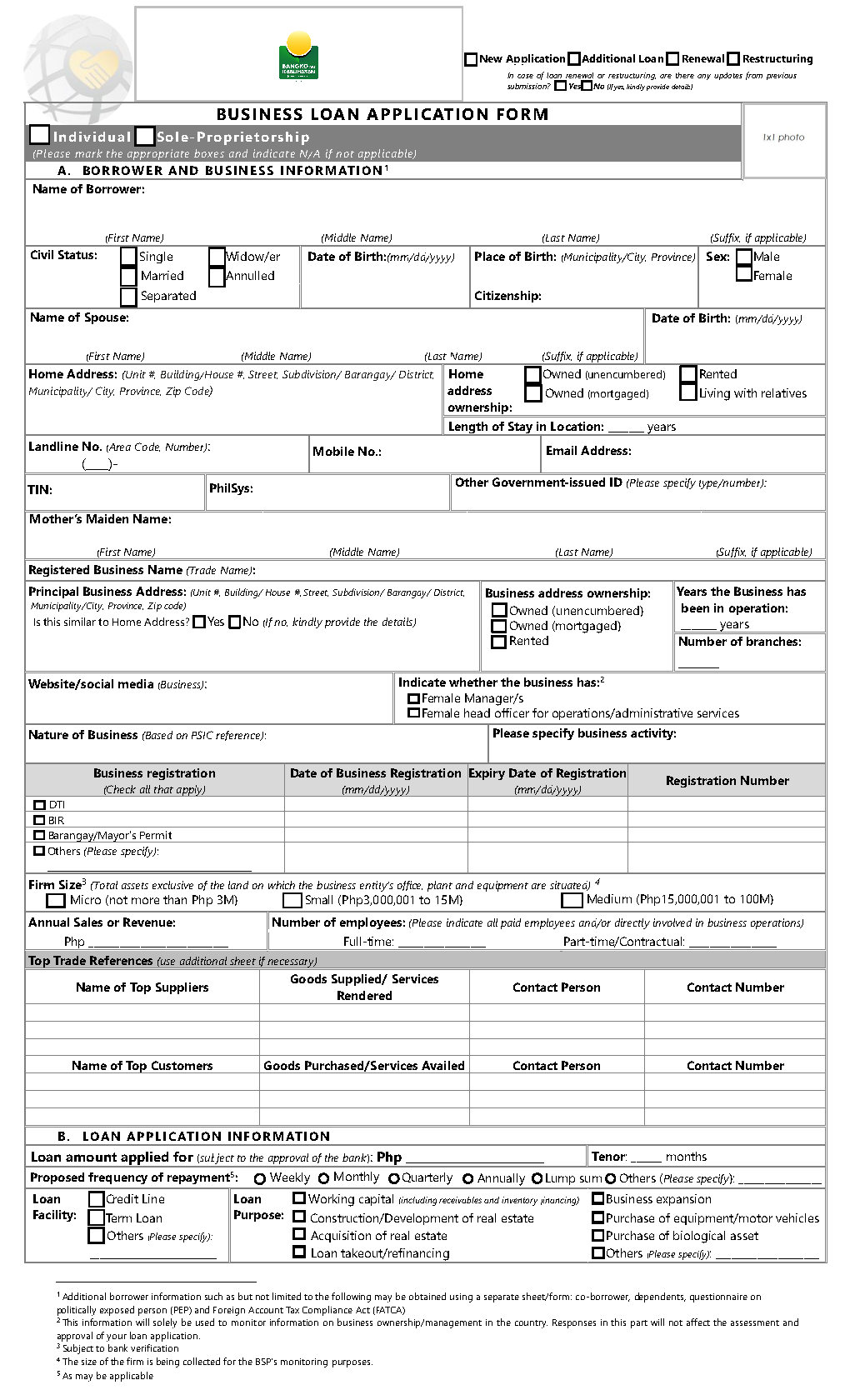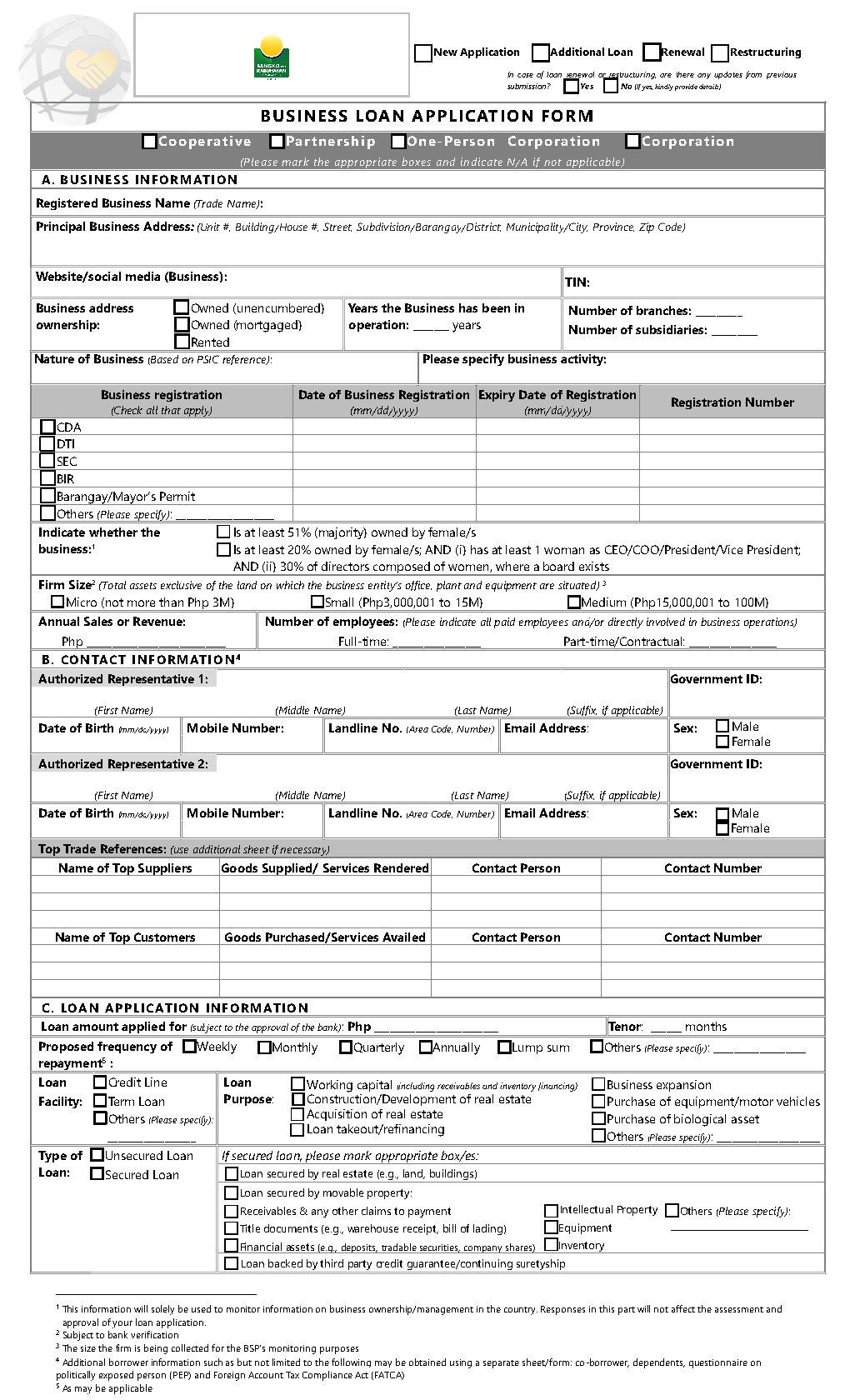 APPLICATION FORM TEMPLATE (To download, Just click the image of the form) For Individual & Sole- proprietor For Corporation, Partnership & Cooperative